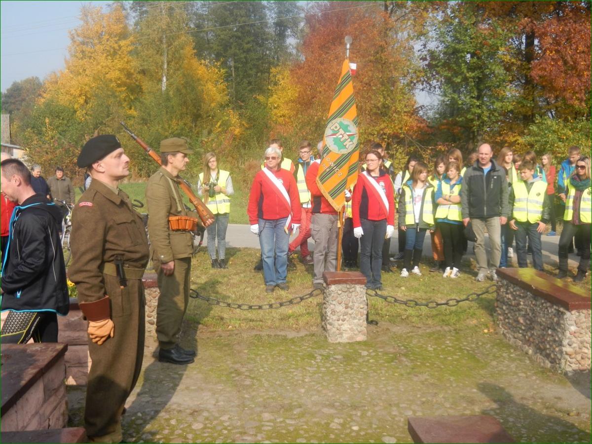 Przed pomnikiem w Czatolinie odbyła się patriotyczna uroczystość. Była honorowa warta, wprowadzono sztandar PTTK Łowicz, złożono wiązanki kwiatów, zapalono znicze. Po wysłuchaniu relacji poświęconej skoczkom, uczestnicy uroczystości udali się do budynku O.S.P. Przy ognisku był dalszy ciąg opowiadań o Cichociemnych. Były kiełbaski, herbata, kawa. Wręczono również nagrody. Nasz kolega Rysio Gołembowski jako najstarszy uczestnik rajdu, otrzymał w nagrodę plecak.